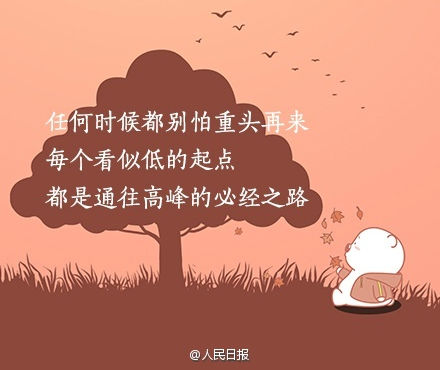 任何時(shí)候都別怕重來,每個(gè)看似低的起點(diǎn),都是通往高峰的必經(jīng)之路。你不努力,誰又能替你成長?來源:新浪微博@人民日報(bào)