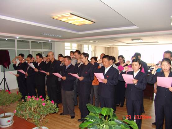 我宣誓:"我志愿加入中國(guó)共產(chǎn)黨,擁護(hù)黨的綱領(lǐng),遵守黨的章程,履行黨員義務(wù),執(zhí)行黨的決定,嚴(yán)守黨的紀(jì)律,保守黨的秘密,對(duì)黨忠誠(chéng),積極工作,為共產(chǎn)主義奮斗終身,隨時(shí)準(zhǔn)備為黨和人民犧牲一切,永不叛黨"。6月29日上午10∶00時(shí),17名新加入黨組織的中國(guó)共產(chǎn)黨預(yù)備黨員、所屬各黨組織書記、老黨員代表等30余人的莊嚴(yán)宣誓,標(biāo)志著青海物產(chǎn)系統(tǒng)慶祝建黨91周年系列活動(dòng)正式展開。