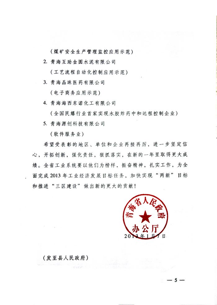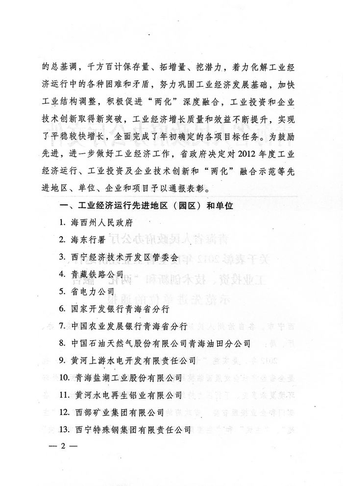 2012年,青海省物產集團總公司在省委、省政府及省國資委的大力支持和領導下,集團總公司按照全省工業(yè)經濟總體部署和要求,著力推進工業(yè)項目建設,榮獲"2012年度工業(yè)投資貢獻獎"。